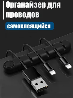 Силиконовый держатель органайзер проводов на стол (чёрный)