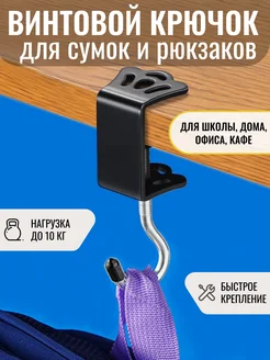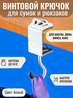 Держатель винтовой для сумки под стол (с двумя крючками)