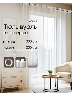 Тюль вуаль на белых люверсах 300х240 см
