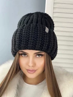 Шапка вязаная зимняя с отворотом на флисе