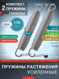 Пружины растяжения 170 мм усиленные оцинкованные, 2шт