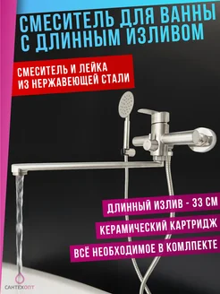 Смеситель для ванны с душем с длинным изливом однорычажный