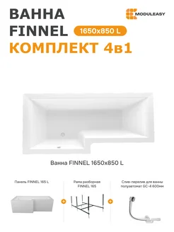 Ванна акриловая 165х85 FINNEL левая набор 4в1 01фин16585лкп