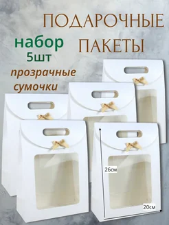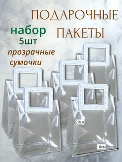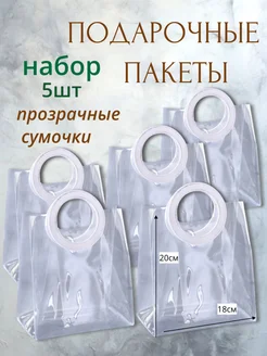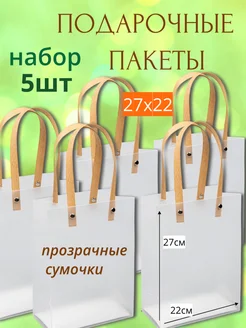 Подарочные пакеты прозрачные, 5 штук (22*27*7,5)
