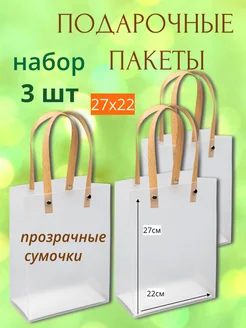 Подарочный пакет прозрачный набор 3 штуки (22*27*7,5)