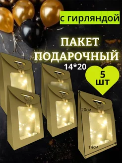 Пакеты подарочные с гирляндой, 5 штук (14*20*7)