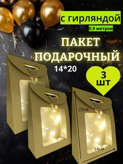 Пакеты подарочные с гирляндой, 3 штуки (14*20*7)