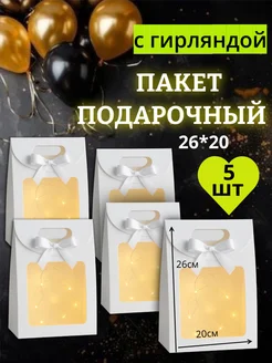 Пакет подарочный 5 штук (26*20*9), с гирляндой
