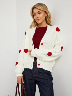 Кардиган оверсайз короткий на пуговицах белый с принтом