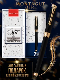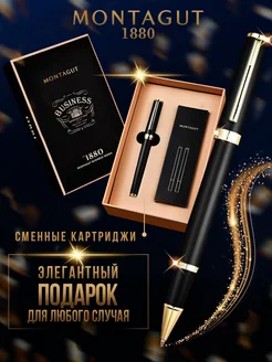 Ручка роллер подарочная черная, в комплекте стержни 2 шт
