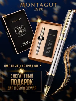 Ручка роллер подарочная серебряная, стержни 2 шт