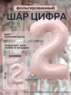 Фольгированный шар-цифра 2 Пыльная роза, 102 см