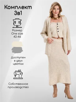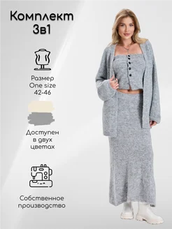 Костюм вязаный трикотажный теплый 3 в 1 юбка топ кардиган