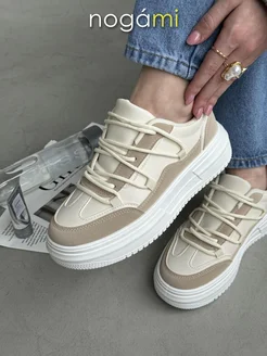 Кроссовки кожаные бежевые на осень