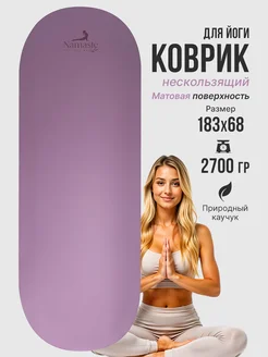 Коврик для йоги нескользящий каучуковый с ремнём