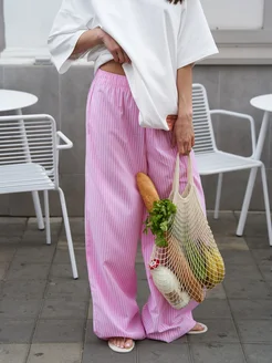 Штаны пижамные на резинке домашние с карманами