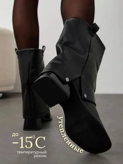 Сапоги утепленные демисезонные трубы на устойчивом каблуке