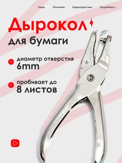 Дырокол для бумаги на одно отверстие металлический