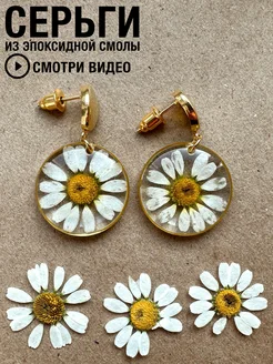 Серьги подвески из эпоксидной смолы c цветами
