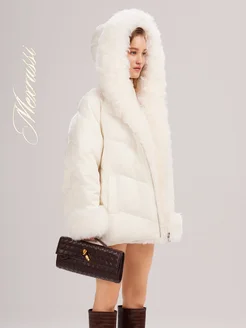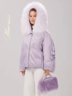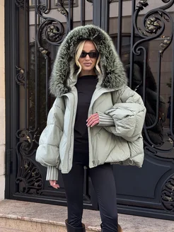 Короткий пуховик с натуральным мехом и капюшоном