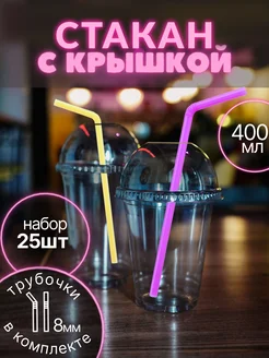 Стаканы для коктейлей пластиковые с крышкой 400 мл 25 шт