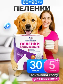 Пеленки одноразовые для собак, животных, 60х90 30 штук
