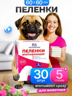 Пеленки одноразовые для собак, животных, 60х60 30 штук