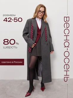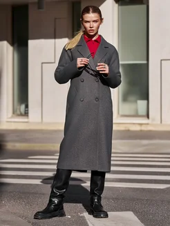 Пальто шерстяное демисезонное длинное с поясом
