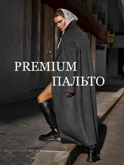 Пальто шерстяное демисезонное длинное в полоску с поясом