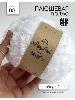 2шт. Плюшевая пряжа "Beyleu Teddy" цвет 001, белый