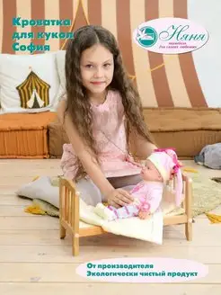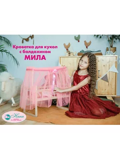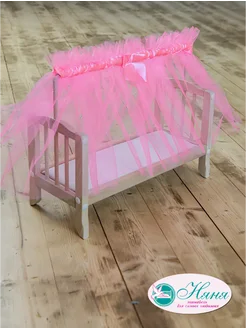 Кукольная игрушечная кроватка Мила 50см с балдахином