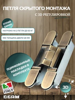 Скрытые петли дверные межкомнатные CEAM 1429 матовый хром