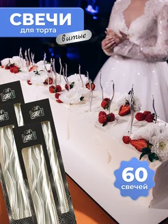 Свечи на свадебный торт волнистые серебряные 60 шт