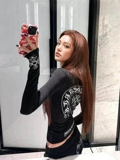 Лонгслив черный кпоп Y2K в рубчик с длинными рукавами