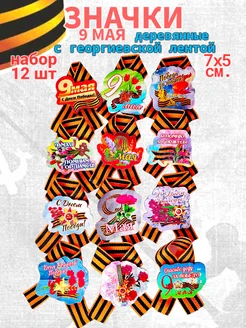 Значки 9 мая с георгиевской лентой деревянные брошь