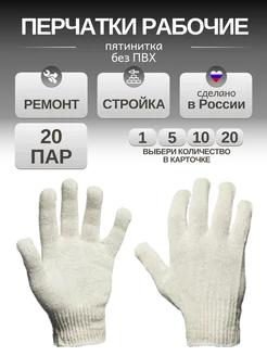 Перчатки рабочие ХБ строительные 5 нитей летние 20 пар