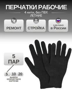 Перчатки рабочие ХБ строительные 4 нити летние 5 пар