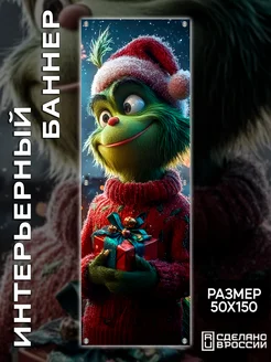 Постер на стену баннер С новым годом50х150 2026 Гринч НГ