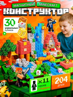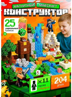 Магнитный конструктор minecraft кубики блоки 204 шт