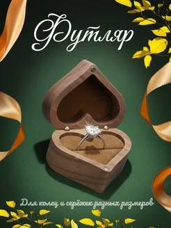 Подарочная коробка футляр для кольца дерево сердце