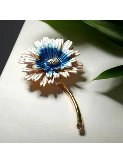 Брошь «Цветок» пушистый, цвет бело-синий в золоте