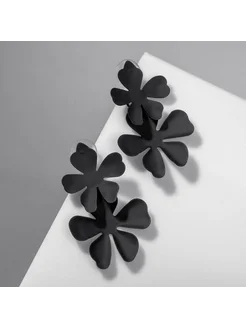 1наб.Серьги металл «Яркость» цветы, цвет чёрный