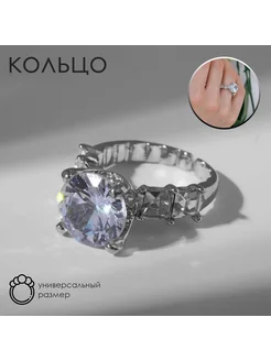 Кольцо с камнем «Леди», безразмерное, цвет белый в серебре