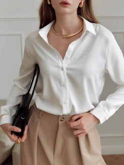 Рубашка белая атласная шелковая нарядная оверсайз