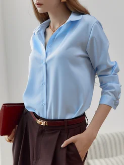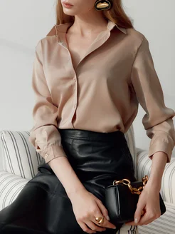 Рубашка шелковая оверсайз школьная нарядная в офис