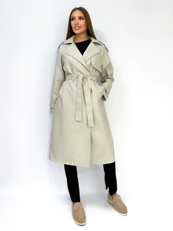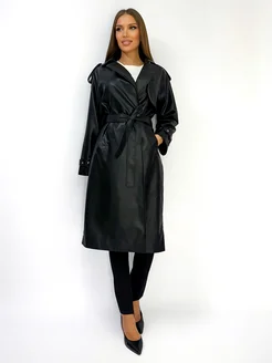 Плащ кожаный длинный с поясом