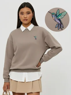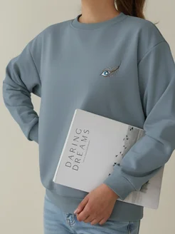 Свитшот оверсайз без начеса с вышивкой