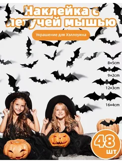Трехмерные наклейки с летучими мышами на Хэллоуин (48 штук)