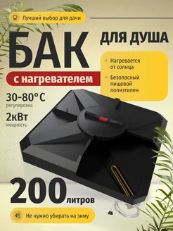 Бак для летнего душа 200 литров с подогревом и с лейкой