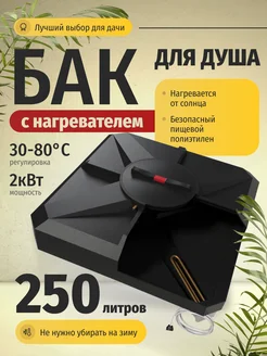 Бак для летнего душа 250 литров с подогревом и с лейкой
